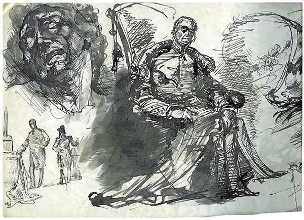 Karl Friedrich Ludwig Felix von Rumohr (1785 - 1843), Charakterköpfe, Bleistift und braune Tinte, 241 x 191 mm, E.B. Crocker Art Gallery, Sacramento. Museum No. 606-9, abgebildet in: Kat. Master Drawings from Califonia Collections, Berkeley 1968, S. 101.