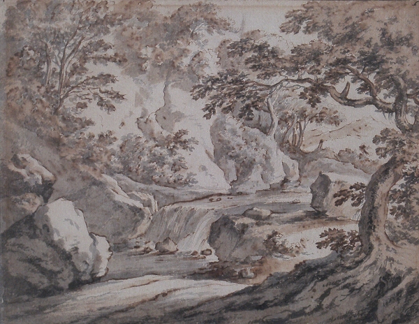 Feder in Braun, braun und grau laviert; 229 x 288 mm. Verso