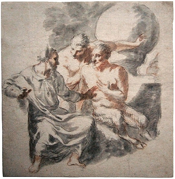Händen), rote und schwarze Kreide und Rötel, grau laviert, 183 x