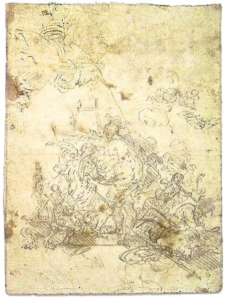 * der Kriegsgott Mars, von Amors Pfeil getroffen, liegt zu Boden