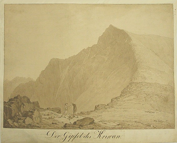 Fünf Sepien mit Veduten der Hohen Tatra und nördlich