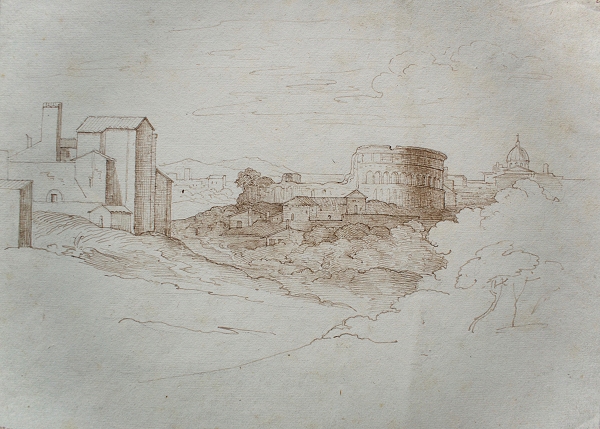 Zusammen mit Franz Horny (1798 - 1824) und Theodor von Rehbenitz (1791 - 1861) hatte Olivier im Frühjahr 1820 ein Zimmer im Palazzo Caffarelli beim Kapitol bezogen. Von dort führte der Blick über das Forum Romanum zum Kolosseum hin. Horny hat diese Aussicht mehrmals zeichnerisch festgehalten.