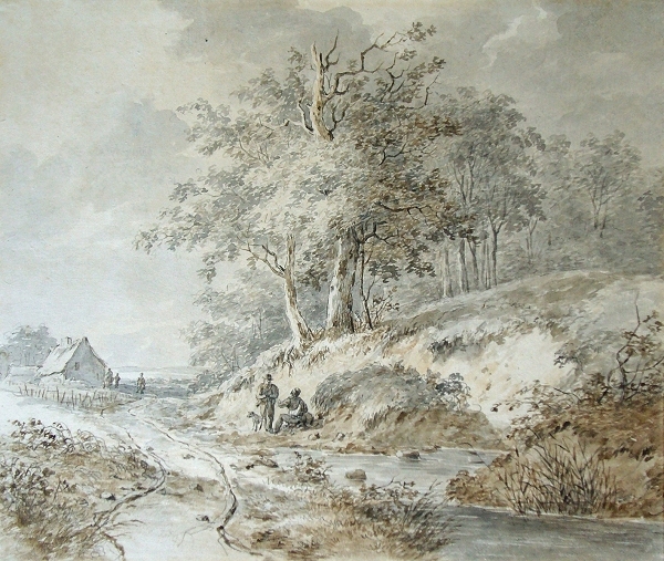 Schwarze Kreide, Tusche in Braun und Grau ebenso laviert, 246 x 293