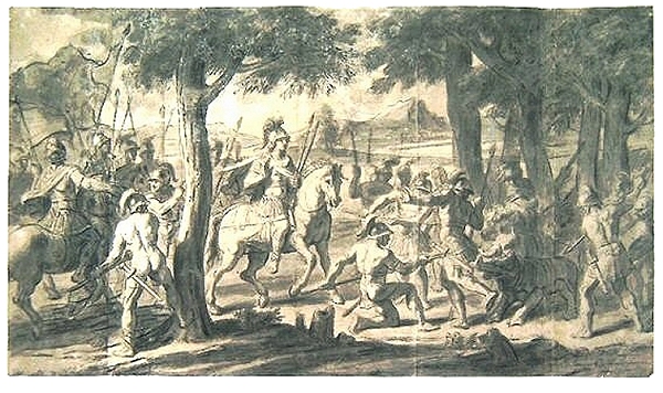 erstreckten, gebietet Alexander seinen Soldaten Einhalt, bedrohliche