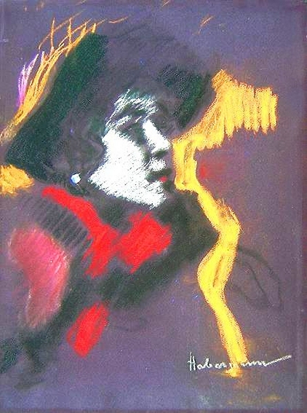 Pastell auf dunkelrotem Tonpapier. 450 x 320 mm, unten rechts