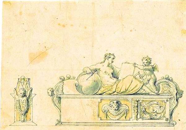 Vermutlich war die Zeichnung als Vorlage für eine Goldschmiedearbeit